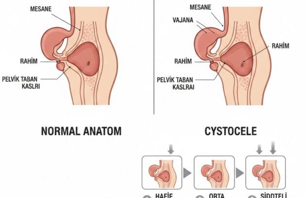 Sistosel (İdrar Kesesi Sarkması): Kapsamlı Bilgiler Sistosel, yaygın bir pelvik organ sarkması türü olup, halk arasında mesane sarkması veya idrar kesesi sarkması olarak da bilinir. Mesane ile vajina arasındaki destekleyici duvarın zayıflaması veya gerilmesi sonucu mesanenin vajinaya doğru düşmesi veya sarkması durumudur. Sistosel Nedir? Sistosel, mesaneyi destekleyen bağların ve kasların…